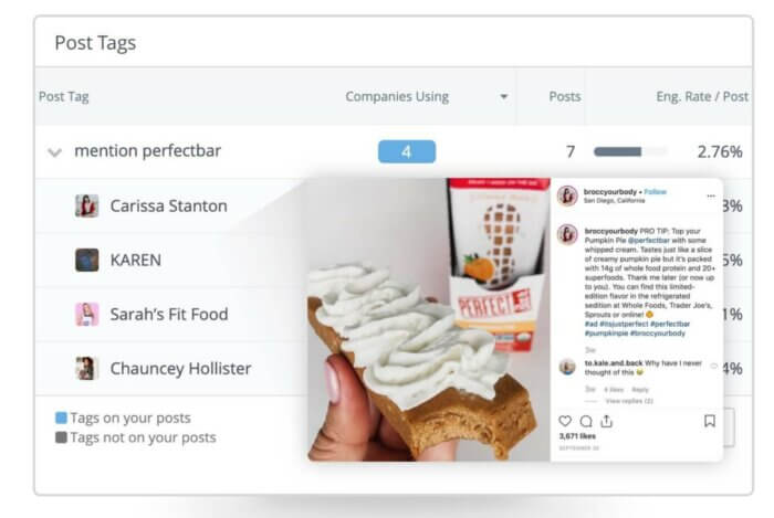 How it works: Rival IQ is a social media analytics tool that can help you automate your influencer tracking, preventing you from having to find and measure your influencers’ posts manually. With Rival IQ’s auto-tagging and scheduled export tools, you can set up the campaigns you want to track and easily see results. And with Rival IQ’s new social listening tool, you can find who is already talking about your brand to find new influencers. You can also use it to find people in your niche or use the Discover tool to find content creators on Twitter and Instagram.