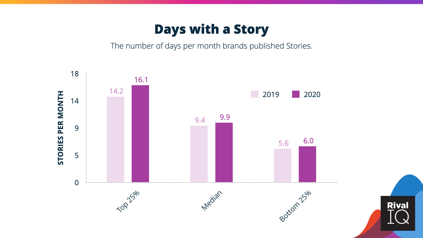 - The median brand publishes an Instagram Story 10 times per month, or about once every three days.