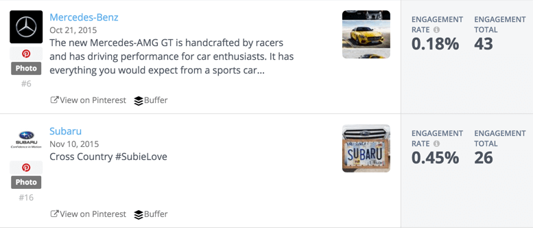 - Engagement: Know your top content and get complete post details to view per-post metrics including repins, pin comments, and engagement rate