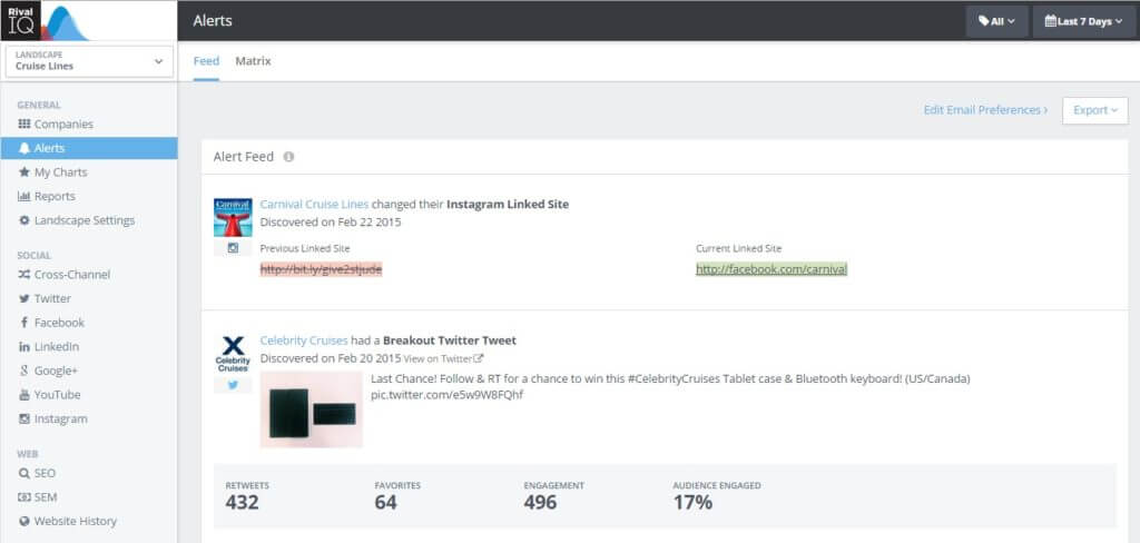 Rather than wading through the social networks or Google search to try and figure out what’s going on, take just a few minutes in Rival IQ and KNOW what’s happening quickly and easily – and be ready to take action!