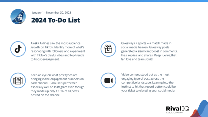 Alaska Airlines’ To-Do List provides inspo and a place to start in the new year, like experimenting more with Carousel posts and TikToks.