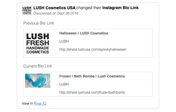 Plus, we’ll keep the history of these changes for you, so you can easily review trends in how a competitor uses their Bio Links.