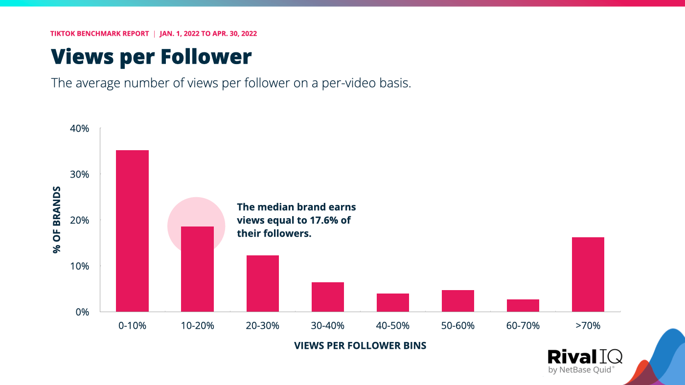 The average brand in our study earns about 17.6 views per 100 followers on each video they post.