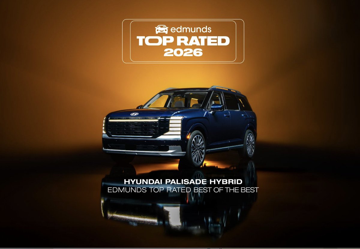 🏆 The 2026 Hyundai Palisade Hybrid wins @Edmunds’ Best of the Best for 2026—chosen from 300+ vehicles as their top vehicle of the year. “The best family car in America is also one of the most desirable.” Spacious. Premium. Efficient. Unmatched value. ✓ Sets the benchmark for pic.x.com/Z5D0xzzm9h