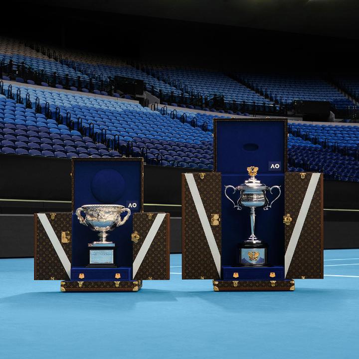 Victory Travels in Louis Vuitton. For a third year as Official Partner of the @australianopen, the House presents two bespoke trophy trunks in honor of the Men's and Women's champions. Discover the creations at on.louisvuitton.com/6016hEIuQ #AustralianOpen #AO #LouisVuitton pic.x.com/lI9nyug2YY