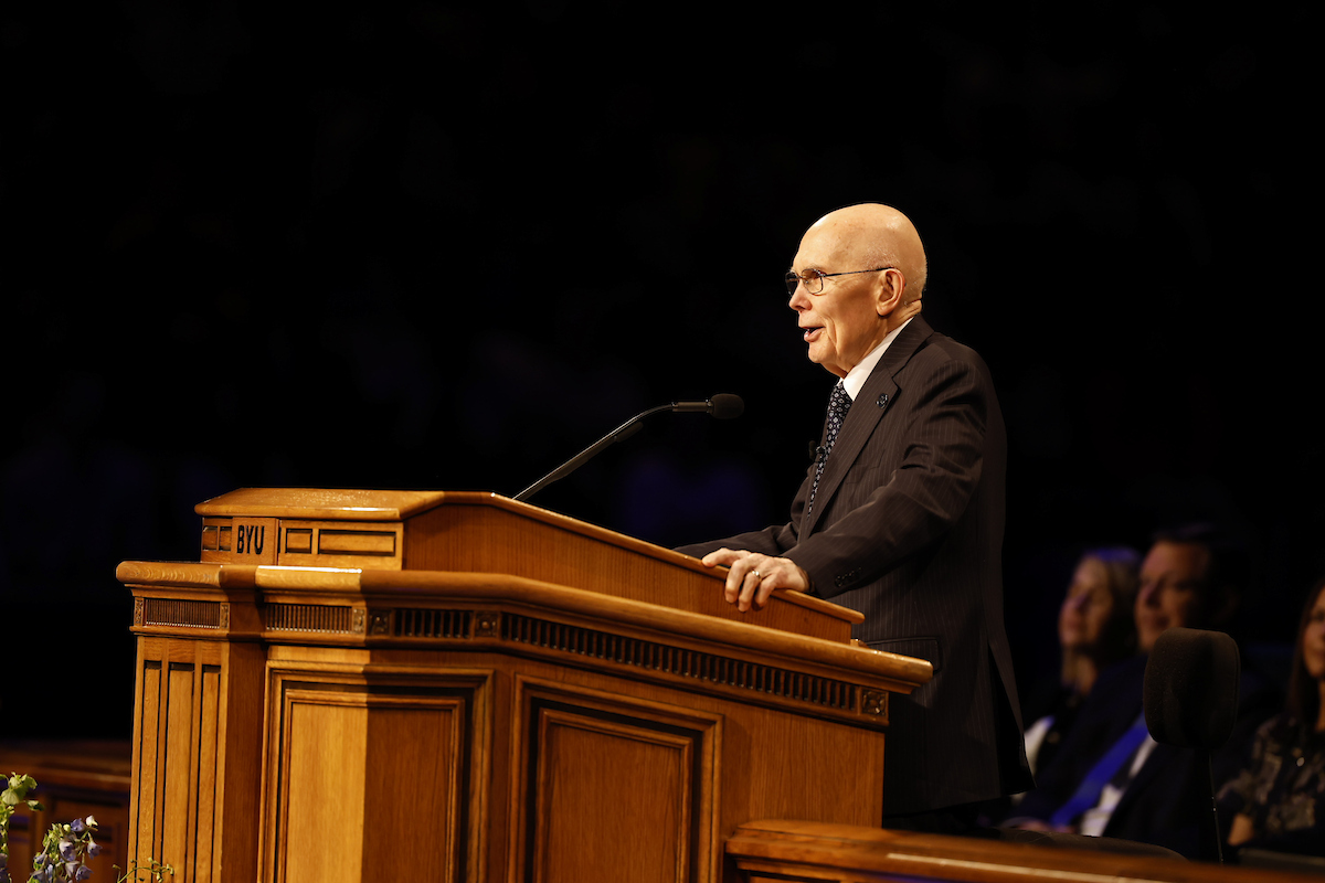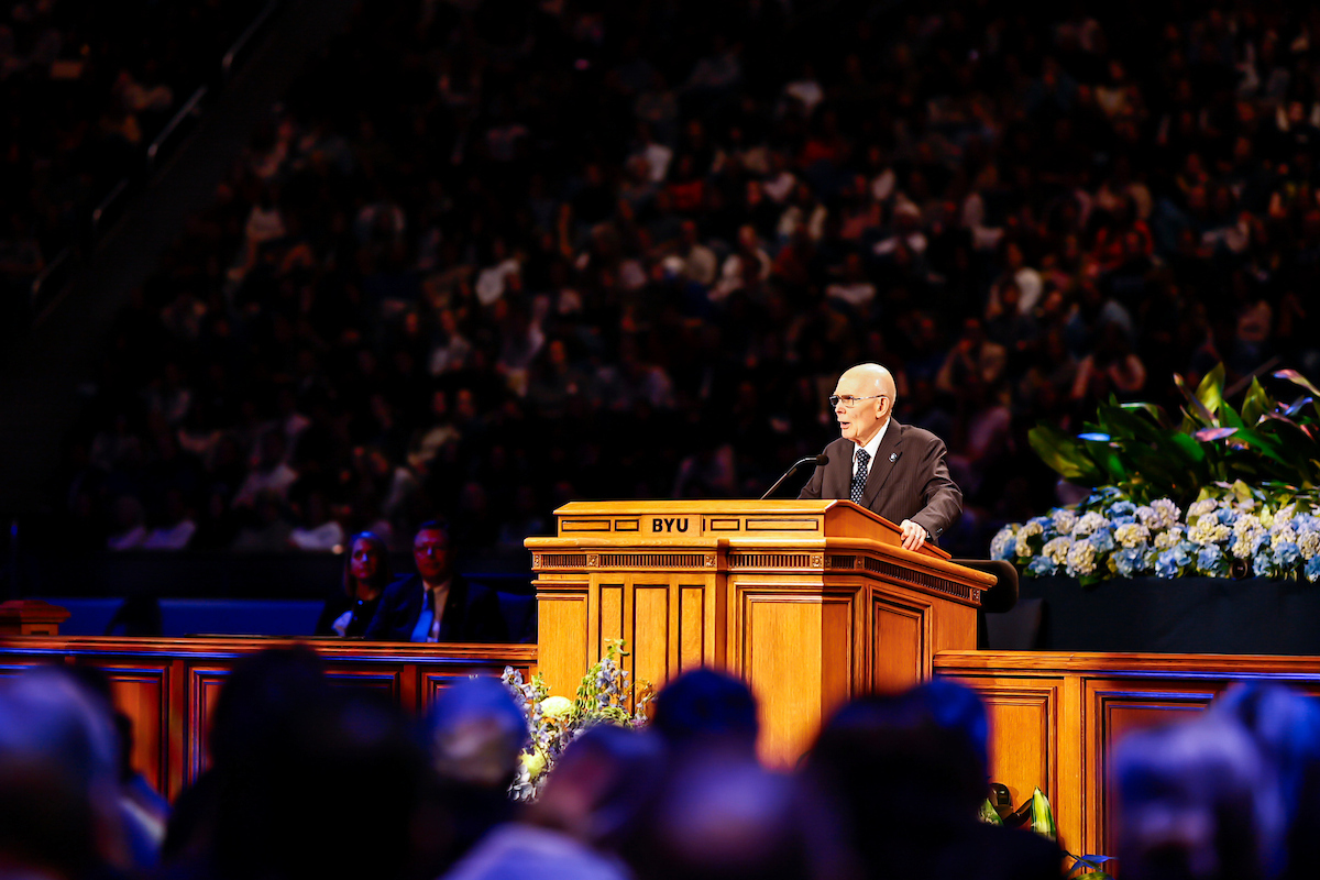 "I feel to emphasize the warning President Russell M. Nelson issued us that in coming days, it will not be possible to survive spiritually without the guiding, comforting, and constant influences of the Holy Ghost." - President Dallin H. Oaks #BYUDevo pic.x.com/dzUS7dMfeS