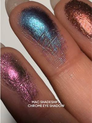 The optical illusion of eye makeup 🌀✨. NEW MAC Shadeshift Chrome Eye shadow features a high-shine, iridescent finish and innovative, ultra-reflective formula that flips color as it hits the light. Which dazzling hue are you into? ✨Venom (red pearl flips orange bronze) ✨Kaleidoscope (pink pearl flips green gold) ✨Ethereal (blue pearl flips teal violet) https://mac-cosmetics.visitlink.me/k9gAr5 #MACDazzle