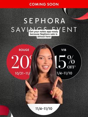 Mark your calendars ⏰ @sephora Savings Event is almost hereeee, what are you stocking up on? 👀 🖤 Rouge: 20% off 10/31–11/10 (+ share with a friend through 11/3) 🤍 VIB: 15% off 11/4–11/10 🤎 Insiders: 10% off 11/4–11/10 #SephoraSavingsEvent #AnastasiaBeverlyHills #makeuptok
