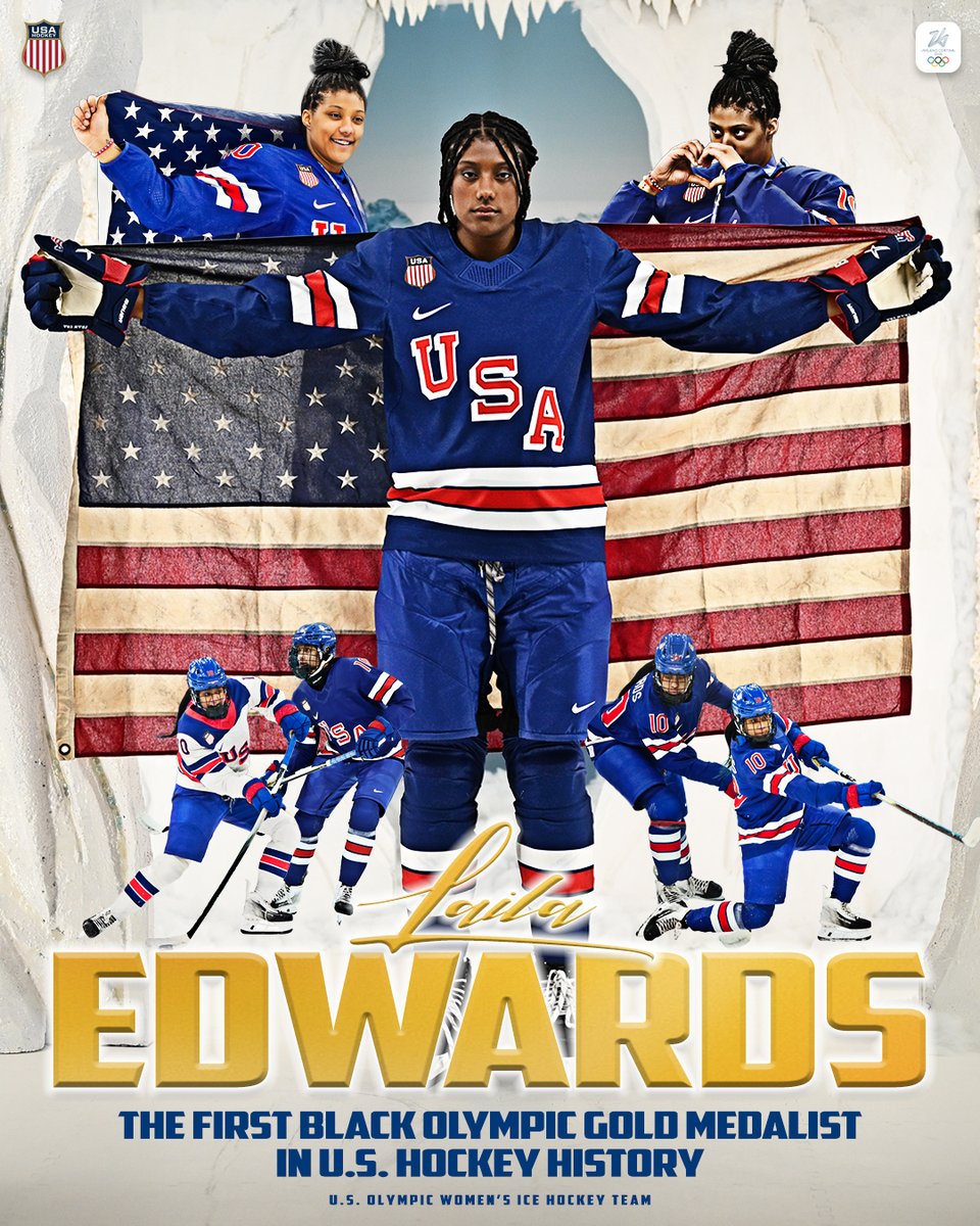 Reaching new heights🥇 Laila Edwards needs no introduction for her on-ice skill, and continues to etch her name in the history books. With her gold-medal performance, she became the first Black American to win gold in ice hockey at the #WinterOlympics. 🇺🇸 #BlackHistoryMonth pic.x.com/rrw4wAmGKC