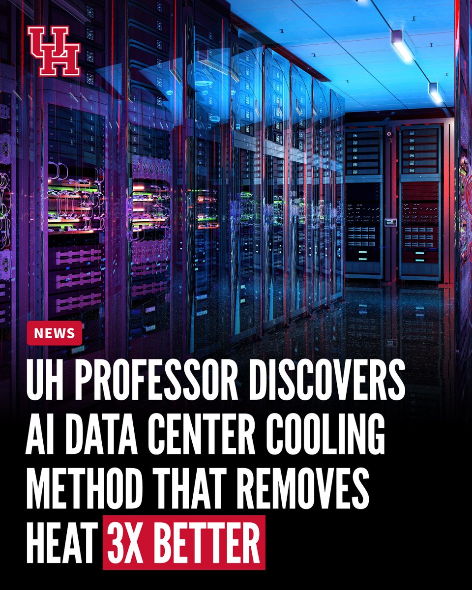 Artificial intelligence systems demand enormous power and produce intense heat. A University of Houston professor has identified a cooling approach that dramatically improves how that heat is managed. Read more: uh.edu/news-events/st… pic.x.com/MM7r5Km6J4